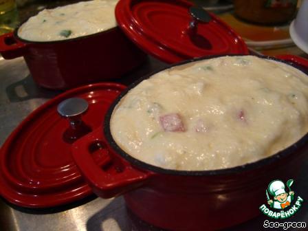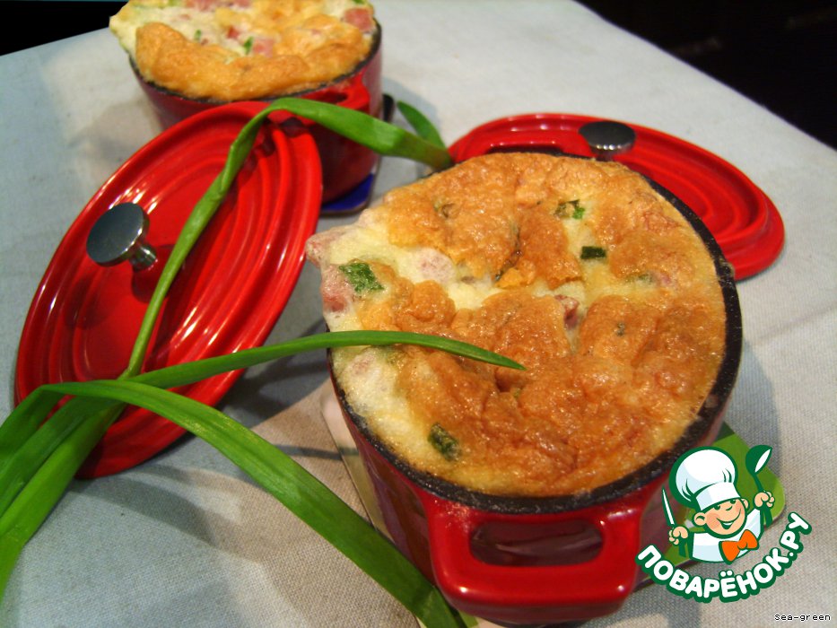 | Рецепт этого блюда был размещeн в 2008 году пользователем Many под названием "Суфле из ветчины" и иллюстрирован мной в рамках акции "Раскраски". Нам блюдо понравилось, получилось вкусно, сытно и сочно. Спасибо автору! |