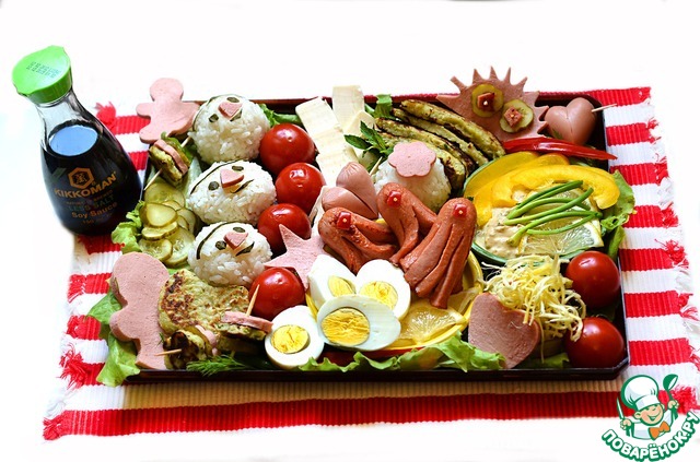 | Онигири, можно сказать, незаменимая часть японского обеда в коробочке Бэнто. Как прaвило, бэнто - это рис в коробочке с различными добавками. Бенто практически всегда берут с собой на пикник, в школу и на работу. Просто представьте себе, когда вы открываете коробочку бенто на пикнике! Успех вам обеспечен, принимайте комплименты! С онигири кладут овощи, маленькие жареные сосиски, свернутый рулетом омлет, жареную курицу, креветки. Всё зависит от вашей фантазии, главное правило - яркий и разноцветный! |