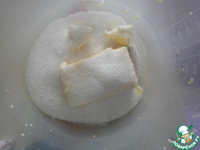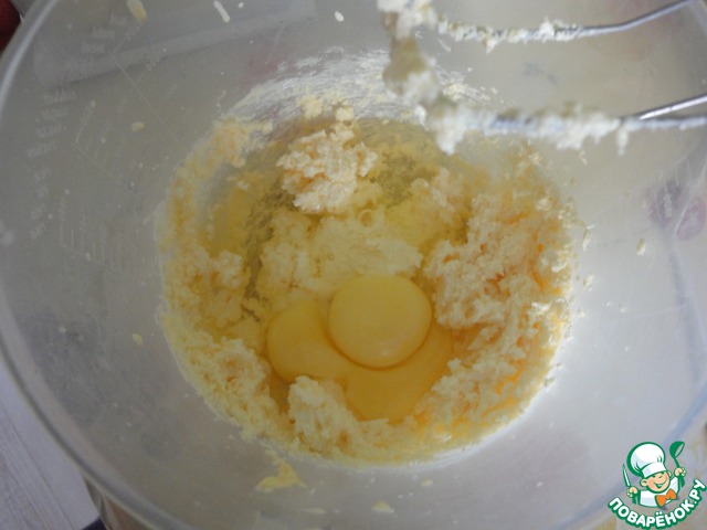 Разогреваем духовку до 180 градусов. Сливочное масло взбиваем с сахаром.