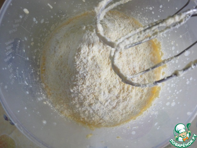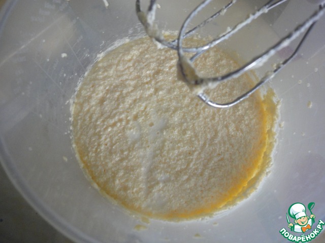 Далее добавляем стакан кислого молока и снова взбиваем. Минуты 2.