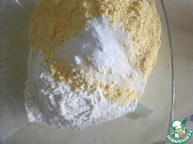 В отдельной миске смешиваем два вида муки, соду и соль.