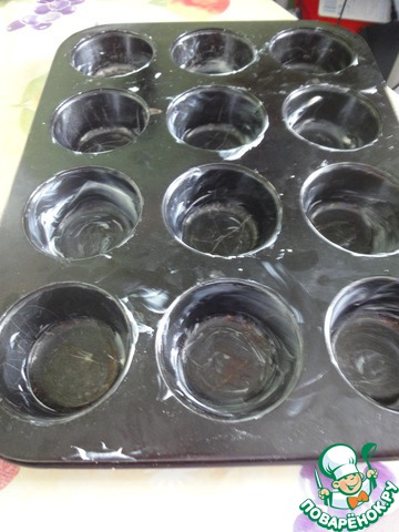 Разливаем тесто по формочкам. У меня никогда не получается сделать это аккуратно :)