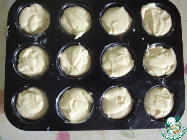 Если у Вас формочки меньшего размера, то из этого количества получится примерно 24 штучки и выпекать их следует минут 10-12.