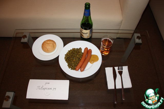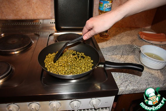 Сосиски с жареным горошком