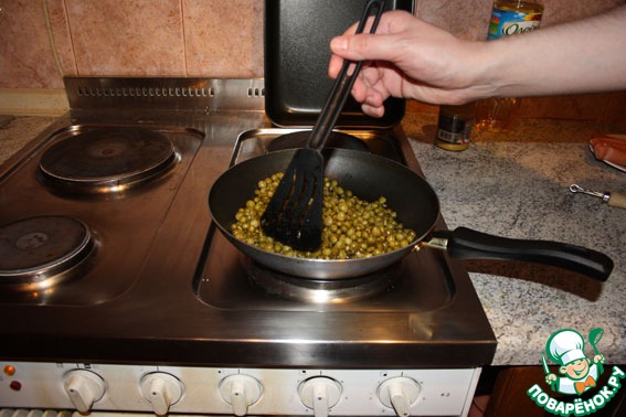 Когда горох хорошо прожарится, снимаю с плиты.