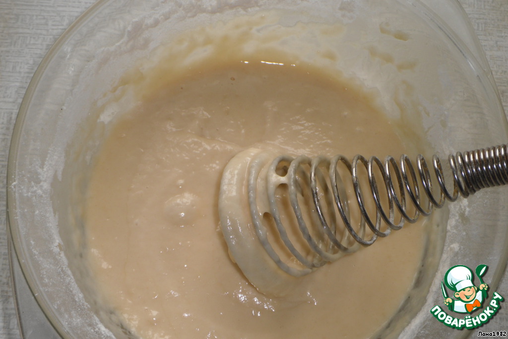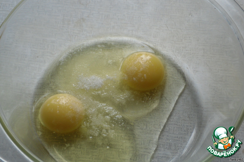В это время готовим тесто. Яйца взбить с солью и сахаром.