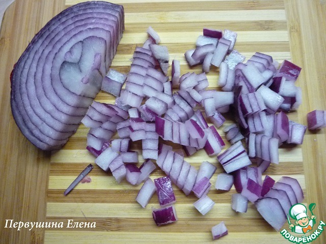 Лук нарезать мелкими кубиками.