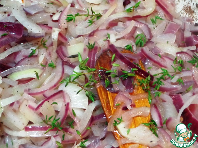 Добавить тимьян и обжаривать около 5 минут, посолить, поперчить.