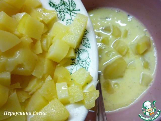 Вареный картофель порезать мелкими кубиками и