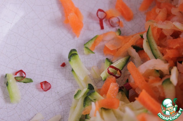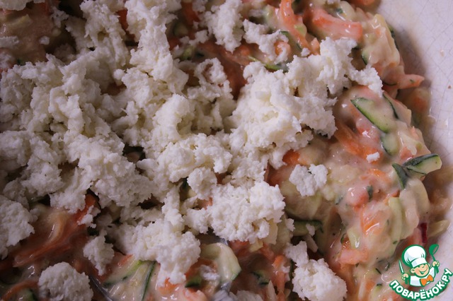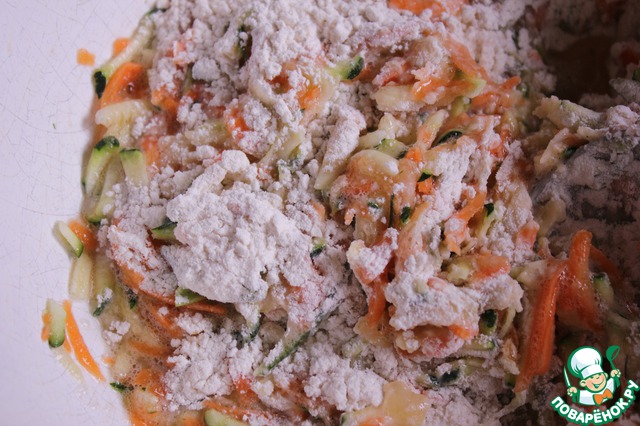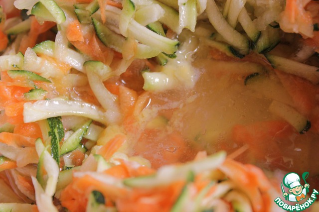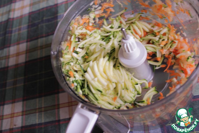 На крупной терке трем все овощи: кабачок, морковь, лук и чеснок