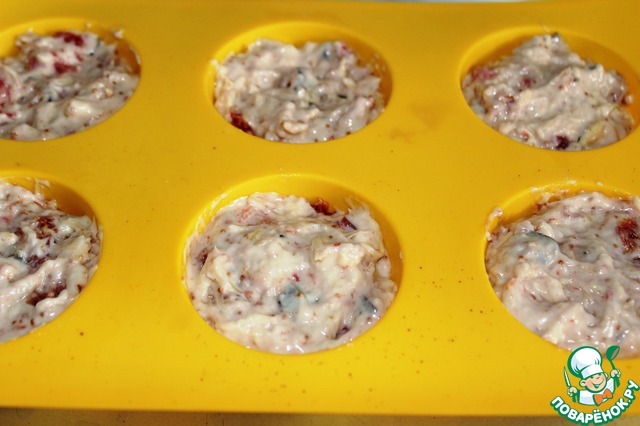 Выкладываю в формочки для маффинов, слежу, чтобы не было пустот, но не утрамбовываю. У меня силиконовые формочки, из других материалов формы имеет смысл смазать маслом. Отправляю формочки в разогретую духовку на 20 - 25 минут.