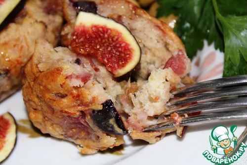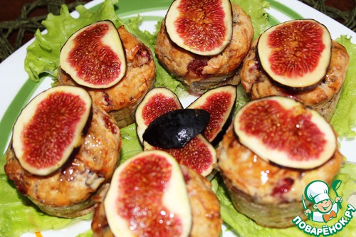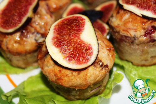 Заключительный аккорд: поливаю довольно горячие маффины бальзамиком, а сверху - кусочек инжира. Кусочек держится хорошо, п. ч. соус липкий. Этот соус имеет сладкий вкус, если Вам нравится более яркие, насыщенные вкусовые ощущения, используйте классический темный. Наконец, можно чередовать. Подавать лучше довольно горячими или теплыми.