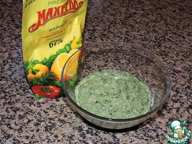 Для оформления закуски приготовить "короны" из полосок твердого сыра, икру и кубики форели. Творожный сыр смешать с майонезом и измельченным укропом.