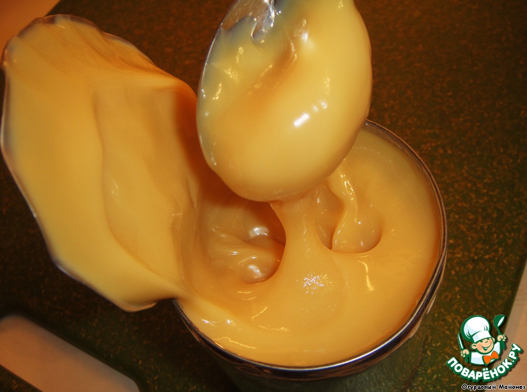 Банку сгущённого молока отвариваем до "полуготовности". Молоко должно немного загустеть и приобрести бежеватый оттенок. Для этого банку сгущёнки надо варить ровно 1 час.