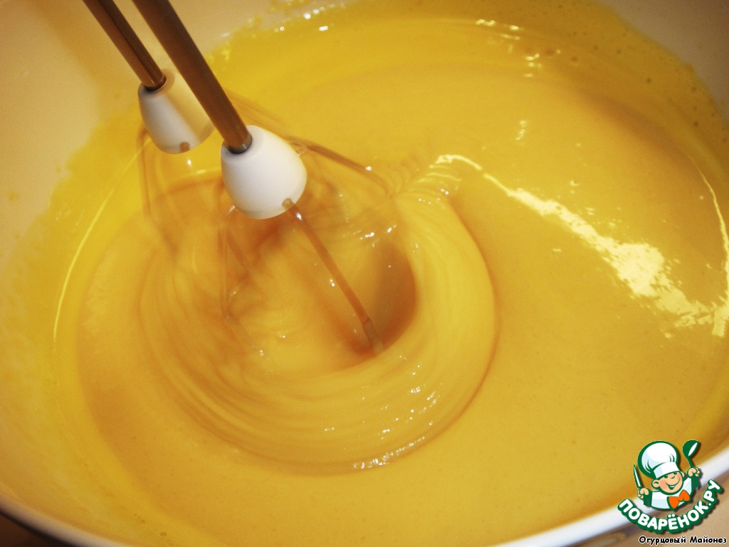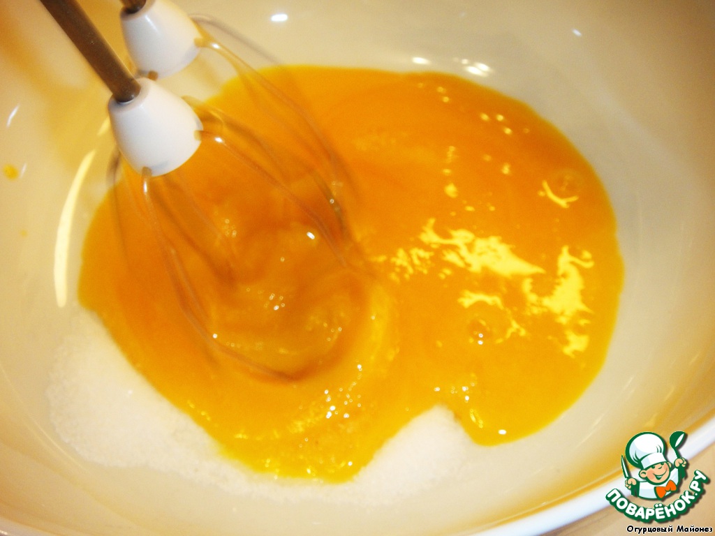 Очень аккуратно отделяем желтки от белков, чтобы к желткам не попал белок, иначе в готовом ликёре вы обнаружите неаппетитные комочки. Растираем миксером желтки с двумя столовыми ложками сахарного песка.