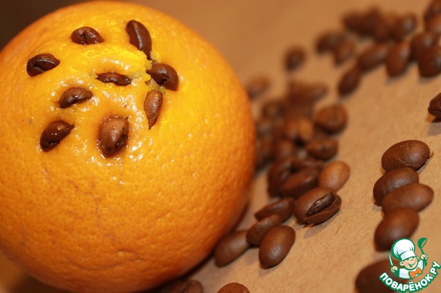 Делаем в нём проколы ножом, вставляем в них кофейные зёрна ( штук 30, без фанатизма ).