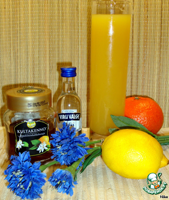 Водка Виру-Валге (можно и другую), мёд натуральный, апельсиновый сок и лимон.