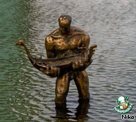 Скульптура возвращающегося домой Калевипоэга с лодкой в руках.