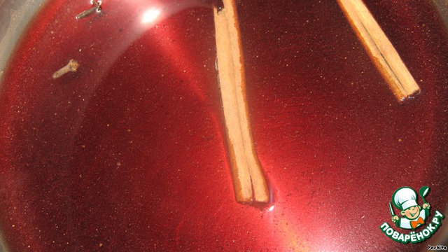 Налить в кастрюлю полстакана вина, добавить корицу, гвоздику и кардамон.