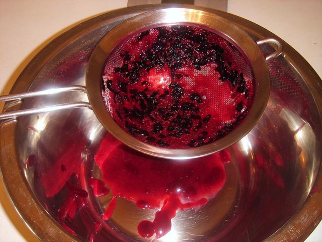 Протираем ягоды через сито. Блендер или мелкая тёрка не подойдут, так как кашица нам нужна без ягодной кожицы. Мисочку с получившимся смородиновым пюре тоже ставим в холодильник.