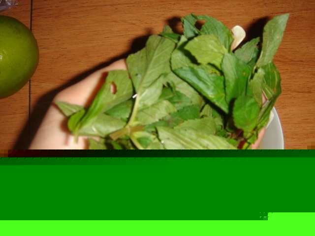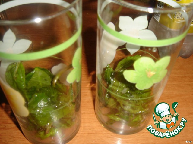 Возьмите хорошую горсть листьев мяты, слегка помните ее в руках, можно порвать на кусочки и разложите по стаканам.