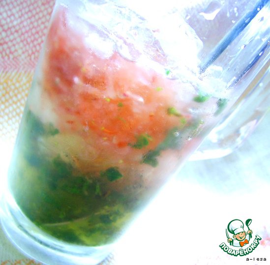(можно клубнику вилочкой, а мяту нарезать или на чесночницу).