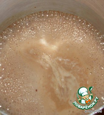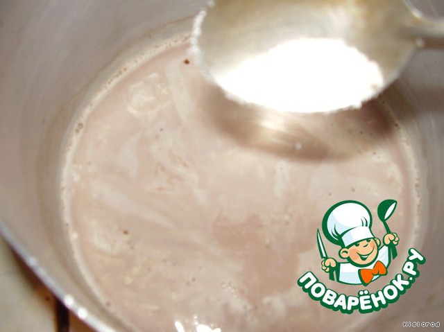 Отставляем, насыпаем туда сахар, выливаем какао, хорошо размешиваем и снова ставим на огонь