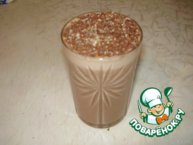 Наливаем коктейль в стакан и посыпаем тертым шоколадом