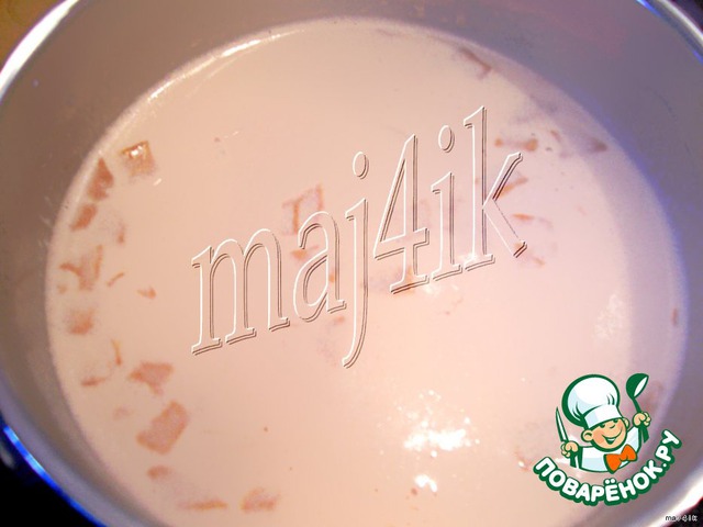 Когда ириски расплавятся, снять молоко с огня и слегка остудить.