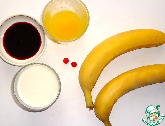Подготавливаем ингредиенты для коктейля. Из апельсина выжимаем сок, бананы моем под проточной водой. Для коктейля можно использовать черничное варенье или ягоды.
