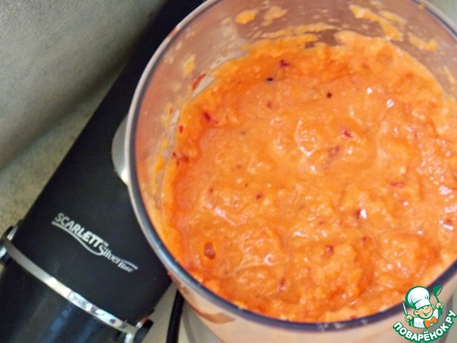 Так как у меня нет соковыжималки, то я воспользуюсь другой техникой " Sсarlett", а именно погружным блендером. Складываем все в чашу и пюрируем.