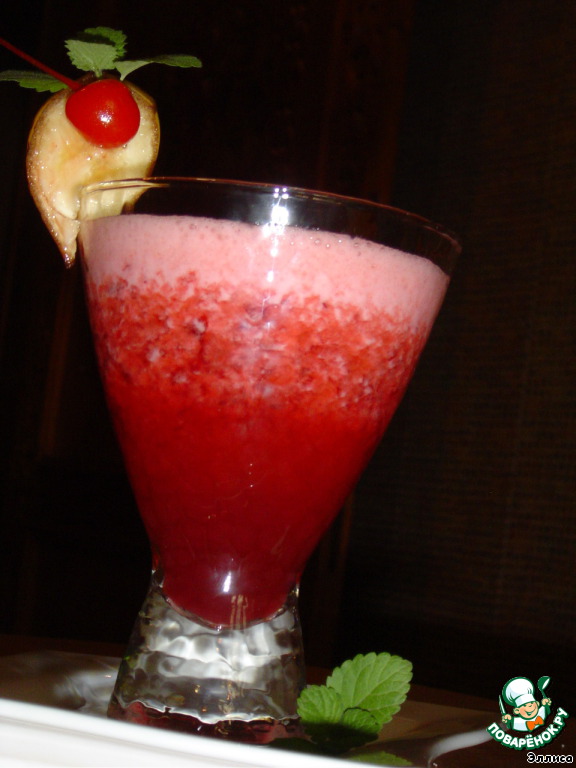 | Продолжаем праздновать открытие нашего бара! Вишня, банан, яблоко... Что может быть лучше в знойные летние дни, попробуйте! Для бара "Виртуальный дринк" и на конкурс "Утомленные солнцем!" |
