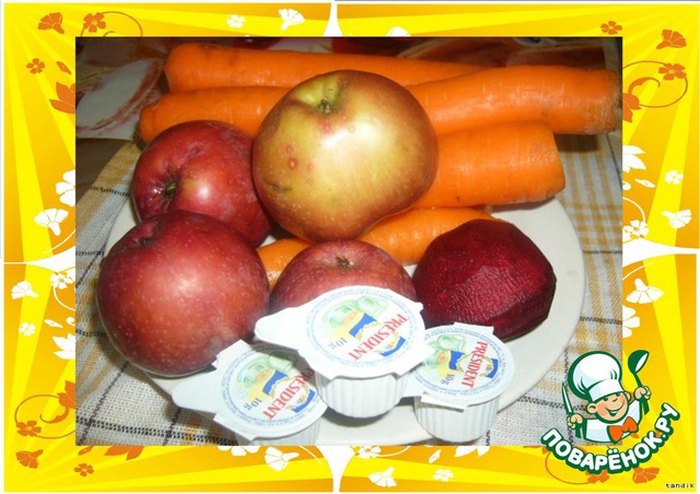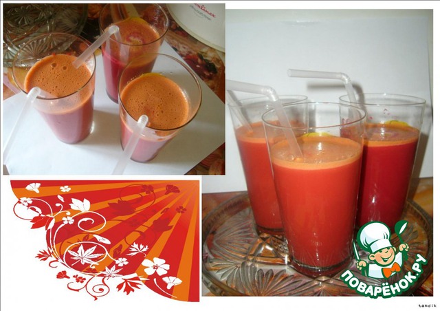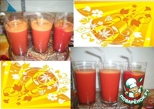 | Рецепт простой, но с подтекстом: а нe задуматься ли ВАМ о своeм здоровье и не приобрести ли соковыжималку. Два года назад я так и поступила. Мои родные очень любят свежие соки. Я ни на мгновение не пожалела о покупке. Готовлю соки без фанатизма. в меру. Надеюсь, что мой рецепт сподвигнет ВАС к здоровому образу жизни. |