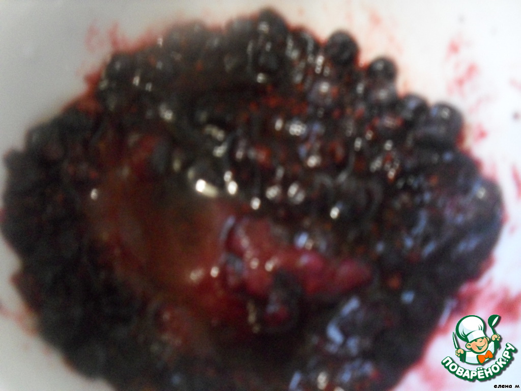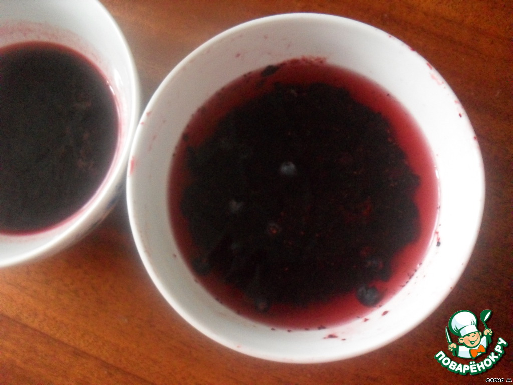 Складываем протёртые ягоды в марлю (два слоя) и отжимаем сок.