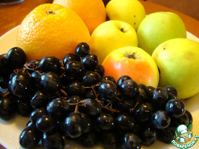Я не стала использовать покупной сок, а приготовила его сама из яблок, винограда и апельсинов.