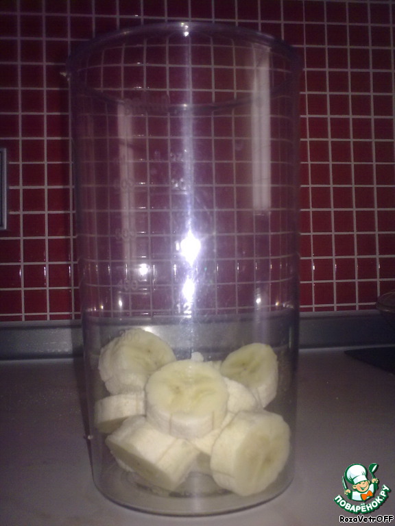 В стакан для блендера поместить нарезанный банан.