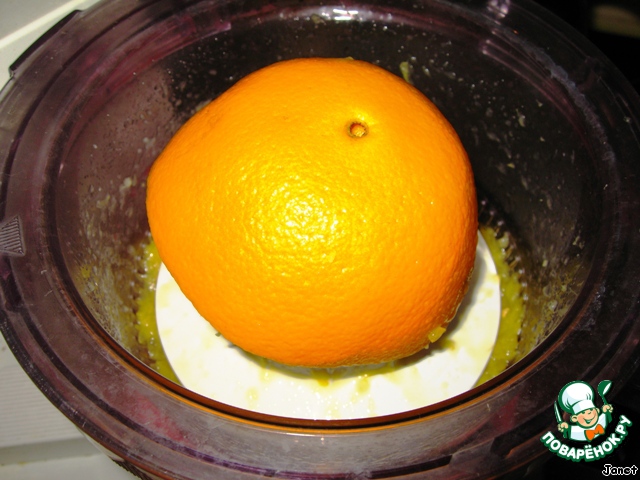 Из апельсинов отжать сок с помощью соковыжималки для цитрусовых. Я просто поменяла насадку на комбайне.