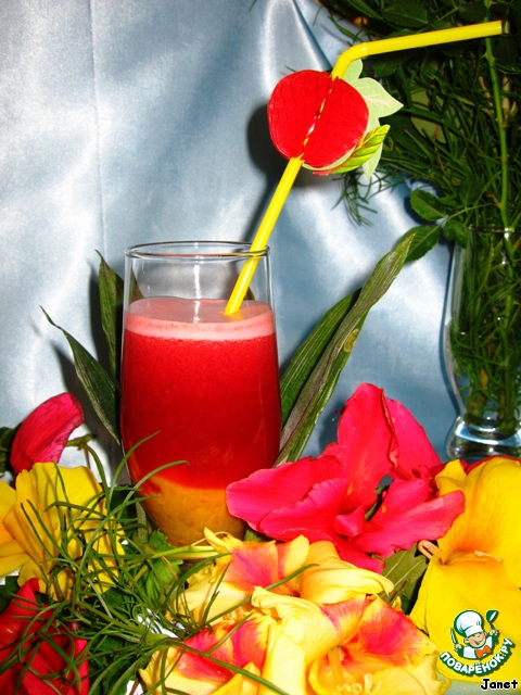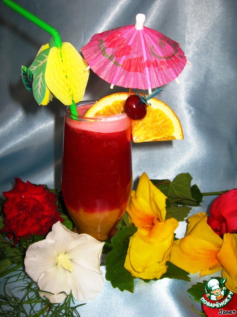 | Название коктейля (от англ. coctail) в буквальном переводе означает "петушиный хвост". Название коктейль появилось 200 лет назад от американского обычая угощать гостей после успешных петушиных боев - "On the Cock's tail". Коктейльный напиток содержит обычно не более 5 ингредиентов, сам по себе играет разными красками, напоминая петушиный хвост. Я хочу предложить Вашему вниманию безалкогольный витаминный коктейль. На конкурс «Утомленные солнцем». |