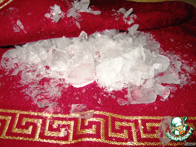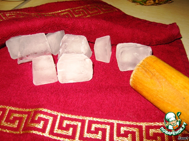Подготовим лёд для коктейлей.Заверуть его в полотенце.