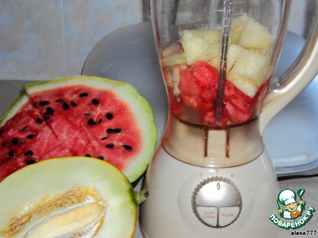 Мякоть дыни и арбуза измельчить в блендере.
