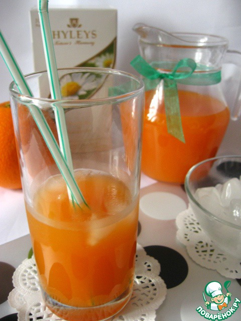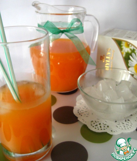 Теперь просто соедините все составляющие: чай, сок апельсиновый, сок морковный и перемешайте.