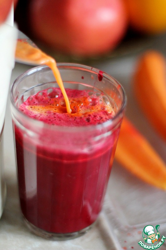Сок свеклы — самый ценный сок для образования красных кровяных шариков и для улучшения крови вообще. Это мощное очистительное средство, которое нужно вводить в морковный сок по чуть – чуть. Самым положительным свойством свеклы является то, что в свекле содержится более 50% натрия и только 5% кальция. Это идеальное соотношение для очищения кровеносных сосудах. Содержание кальция в свекле обеспечивает общее питание клеток организма, а содержание хлора является очищающим средством печени, почек и желчного пузыря, стимулируя деятельность лимфы во всем теле.