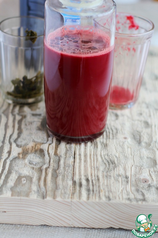 Теперь смешаем процеженный чай и сок. Не забудем достать из чая ягоды черники и добавить в смесь.