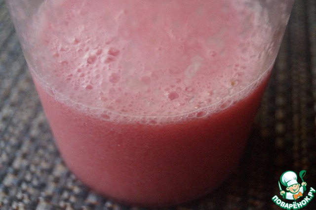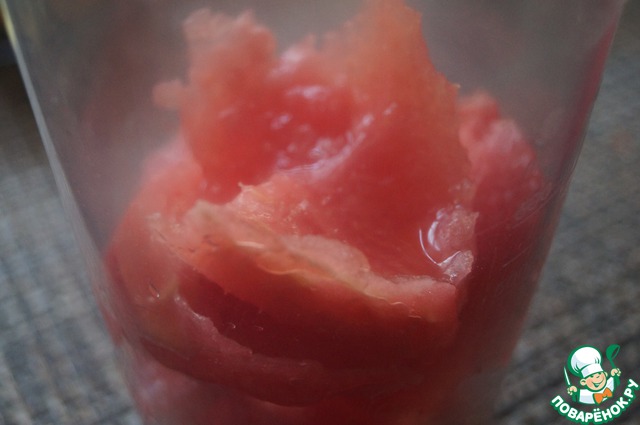 Освободить арбузную мякоть от корок и косточек. Разбить в блендере до однородности.