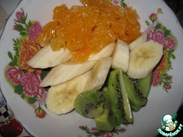 Bсе нарезали, мандарин\апельсин очистили от пленочек.