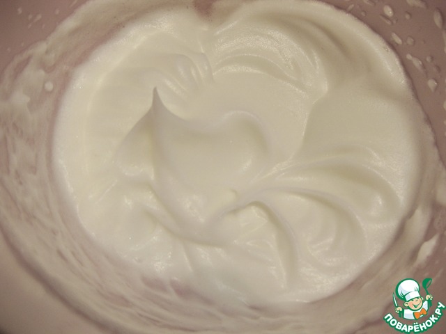 Взбиваем белок с щепоткой соли до пиков.