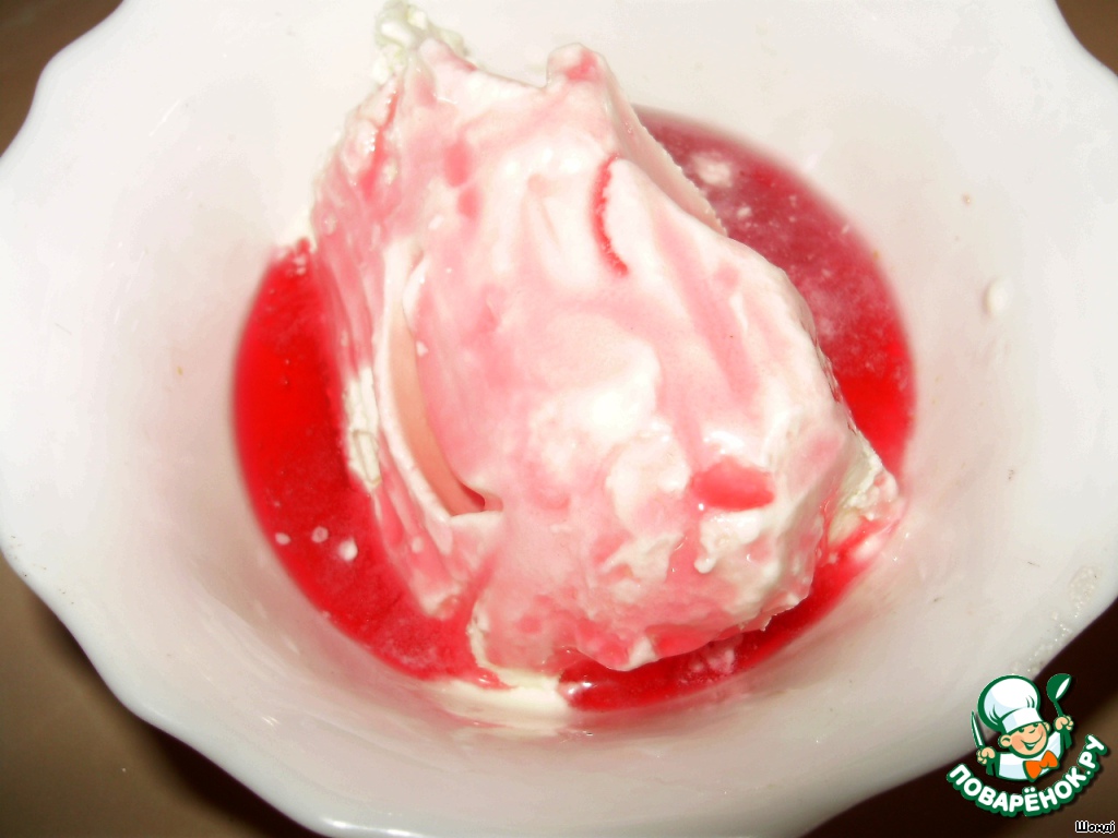 Первый слой - в стакан наливаем персиковый сок, второй слой - мороженое с сиропом облепиховым размешиваем до жидкой и однородной консистенции, третий слой - мороженое с сиропом вишни размешиваем до жидкой и однородной консистенции, снова заливаем слой мороженое с облепихой.