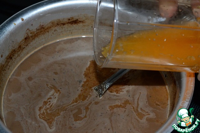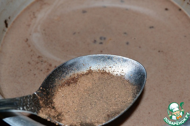 Добавить корицу и мускатный орех. Мешать, не переставая.