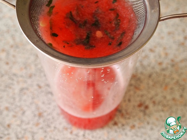 И снова измельчить. Дать постоять минут 15, что бы арбузный сок пропитался ароматом мяты.