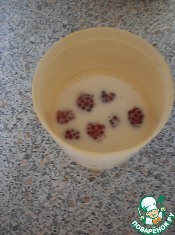 Заливаем молоком так, чтобы оно покрывало ягоды (я делала густой, но если вы хотите, то можете налить чуть больше молока) и перемешиваем.